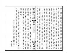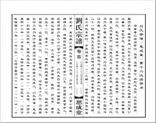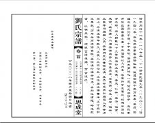 我族先祖系漢代楚元王交公;漢高祖劉邦同父異母之四弟。楚元王交公四十三世孫棨,由晉陵(今之常州)遷徙至梁溪萬安鄉,唐平湖畔。其父祧公號新村,遂將父號命其地曰新村,始創族譜,我族奉棨公為一世祖,延綿繁衍至今歷九百余年。卷一:續修宗譜序、原序、凡例、像贊、祠堂記、總世系世表;卷二至卷十八:各分支世系世表;卷十九至二十:行略、傳序、壽序