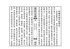 張氏始祖張載。城灣支始祖為守章公,由陜西鳳翔縣遷移城灣定居。卷一:家訓(xùn)、譜序、祠規(guī)等。卷二像贊綜合資料等。卷四開始為團(tuán)灣張氏世系世表。