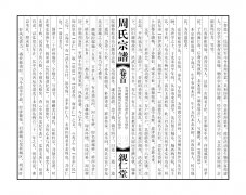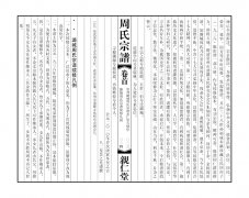 · 提 要遷常始祖孚先,字伯忱;恭先,字伯溫,為監殷公五世孫,兄弟倆從師伊川先生程頤,為理學之士。卷首(卷一):題詞、潞城周氏親仁堂告族人書、續修凡例、原序、凡例、祖訓家規、祠規卷二:宗賢考、歷代烈女、附集序、詩、潞城八景七律、周氏新建祠堂記、壽考錄、節孝錄、卷四:古衣冠圖引、像贊、宗祠祖墓圖、卷五:先賢傳序、卷六:統宗世系世表卷七:獻譜、迎譜留影、風采錄卷八:各分支世系世表、潞城概況記、文人榜、領譜芳名錄。