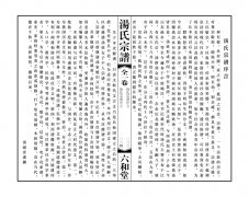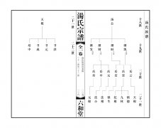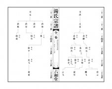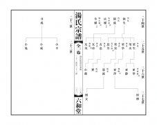 卷一:始祖遺像、新譜下湯宗譜組織機構、奉天敕命、序言、世系圖、表。