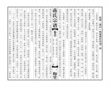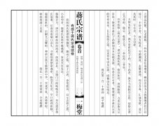 · 提 要我蔣氏自伯齡公錫姓下迄宋元七十九世名號卒葬遷徙婚配靡有闕遺者實賴建國公應(yīng)新修刊之功逮徙鍾溪世僅五傳族屬己渙閱舊譜中有諱邁字子高者於宋政和四年徙居錫山富安鄉(xiāng)胡埭。卷首:序言、譜序;卷一:譜序、總要、姓源、像贊、碑記、祠堂圖、芳名錄;卷二:誥敕、敕命、名人傳記;卷三:藝文、著述、詩文、詞、總考;卷四、五、六、七、八、九、十、十一、十二、十三、十四、十五、十六、十七、十八、十九、二十:世系圖、表。