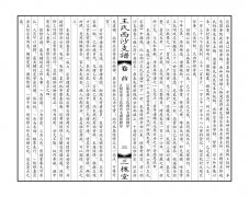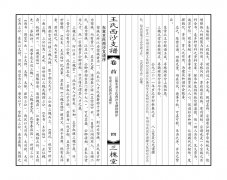 · 提 要三沙始祖王皋。南宋初,扈駕隆祐太后南渡,因功官拜太尉,賜籍蘇州荻川(荻扁)鄉。皋有三子:長子王易,字吾置,遷昆山沙溪(今屬太倉),稱東沙支;次子王鐸,字吾伍,世守荻川,號中沙支;三子王胤,居無錫沙頭,稱西沙支,東常溯源,為王皋第六世端,元為宣慰司同知,稱宣慰公,后裔居泰興、無錫丁塔里,至第十世天惓公,于明洪武三年(一三七○年)由丁塔里遷居江陰金鳳鄉東常村卷一:序一二三、三槐堂銘、題詞論述、目錄、凡例、王氏宗譜原序、像贊、風采錄、功德榜、重修譜序、歷屆修譜執事名錄、卷二:世系、始祖世表引、卷三至卷二十三:各派分支世系世表卷二十四:家范家規、至傳、事略卷二十五:外集、家集居住變遷、祠堂圖、墓圖、五服圖、跋。