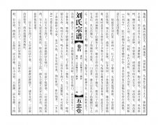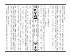 · 提 要遠(yuǎn)祖,系出彭城。唐潮州長史、上蔡安仁,遷于泉山。越十世,至圣教為樞密院中書,授崇安縣丞,因絜母、弟,與圣功居崇安。自后,圣功與圣謨,遷于閩。越三世,云公長子諱訏公,字雄甫,由扈駕南渡,遷居晉陵,為昇東始祖卷一:劉氏宗譜引、原序、五忠堂紀(jì)略、重修譜序、升東劉氏宗譜序、譜跋、題詞、圖騰、升東劉氏源流考、凡例、先祖簡介、功德榜卷二至卷三:題詞、奉天敕命、像贊、傳記卷四至十二:統(tǒng)宗世系世表,各分支世系世表。