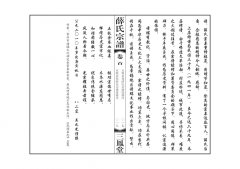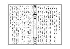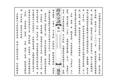 · 提 要遠祖薛齊,字夷甫,蜀漢巴、蜀二郡太守,自四川移居河東汾陽(今山西萬榮縣)成河東望族,為河東始祖。始祖薛抗卜居毗陵棲鸞鄉(西黃土岸)大巷里濯在后圻頭定居。傳至十世祖文(字友梅),為元代東甄王女婿。洪武十三年(一三八○年),薛文被冤誣告為胡惟庸黨,遂以謀反罪,慘遭滅門之災。全家千余人,除十二世祖祥伯、祥叔公被時任家學塾師的大姑父張伯洪所救外,全部遇難。祥伯、祥叔遂分別隱居于五牧和鄧莊,成為五牧余巷和鄧莊兩支薛氏宗族的始遷祖。卷一:三鳳堂、薛氏圖騰、匾額、編修說明、序、先祖像贊、題詞、文獻考、祠墓表卷二:先祖傳卷三:名人題詞、近代名人列傳、紀念文章、卷四:五牧薛氏統宗世系世表、編錄說明、備注、功德榜、附錄卷五至二十二:各分支世系世表。
