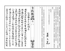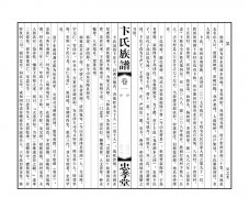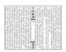 · 提 要卞氏得姓,源出姬姓。周武王封弟叔振鐸于曹(今山東曹縣),世稱曹叔振鐸卞氏遠祖卞莊子,以勇力馳名,奔敵斬殺七十人(一說十人),戰死沙場。始祖忠貞公卞壸,字望之。東晉賢相,濟陰冤句(今山東荷澤縣西南)卷一(甲乙丙):東大分世系世表,卷二(甲乙):東二分世系世表,卷三:東三分世系世表,卷四:東四分陳家邊世系世表,卷五(甲乙丙丁):西大分支世系世表,卷六(甲乙):云尖分支世系世表,卷七(甲乙丙丁):西洋渚、 溧陽戴埠鎮松林大山支 魏村西潘支世系世表,卷八:湖州支世系世表,卷九卷十:廟記、碑記、誥命、傳記、壽序、行略,卷十一:譜引、家規、像贊、詩、族人風采,卷十二至十三:祠墓志序、祠規、活動留影、卞氏宗祠。