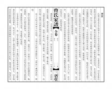 老祖宗昌候公原籍山東,封地在常州一帶。經幾百年的繁衍生息,子孫遍布各地。二、據現年八十二歲的族人十九世裔孫培林掌握的族史情況:我亳瀆曾氏,是洪德公的祖父從豐義袁村遷徙過來的。他共繁衍四房:大房茂大、二房茂東,生育兒子洪年和洪德(即我的曾曾祖父,因為是“老二”,所以后輩就有“老二房”和“新二房”的說法)全一冊:題詞、曾氏圖騰、序言、像、傳略。
