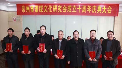 2013年12月15日,常州市譜牒文化研究會在園外園賓館召開成立十周年慶典大會。大會由岳祖瑞副會長主持,首先由會長朱炳國作2013年工作匯報(bào),執(zhí)行會長吳之光作本會成立十周年總結(jié)回顧,并對先進(jìn)個(gè)人,先進(jìn)祠堂管理單位給予表彰。洪全慶副會長宣讀全國各地譜牒文化組織的賀信賀電,最后常州市社科聯(lián)副主席羅志平講話,對常州市譜牒文化研究會十年來的工作予以表揚(yáng)!