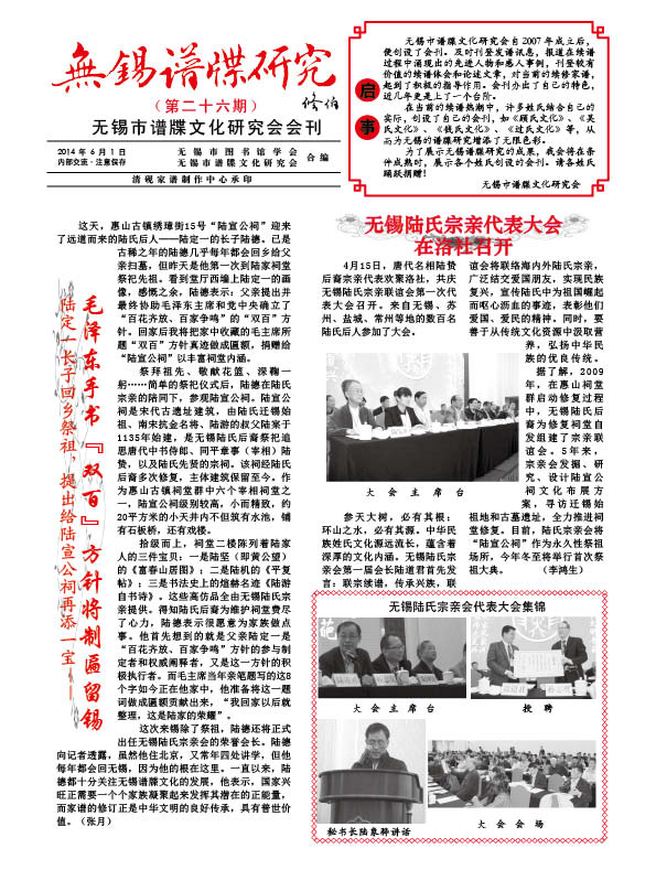 《無錫譜牒研究》是由無錫市圖書館學(xué)會、無錫譜牒文化研究會和清硯家譜制作中心合作編輯的譜牒文化月刊,匯集無錫和周邊地區(qū)的譜牒文化研究、家譜編修、祠堂文化、姓氏文化領(lǐng)域的資訊和論文,為譜牒文化愛好者搭建搭設(shè)交流平臺,共享修譜心得體會,全方位、多角度提供家譜編修的操作指導(dǎo)。