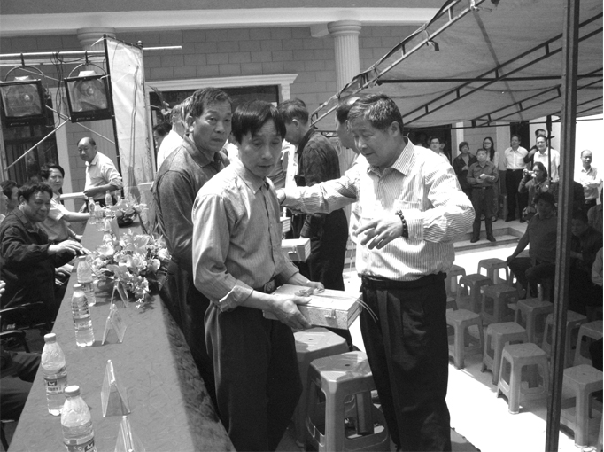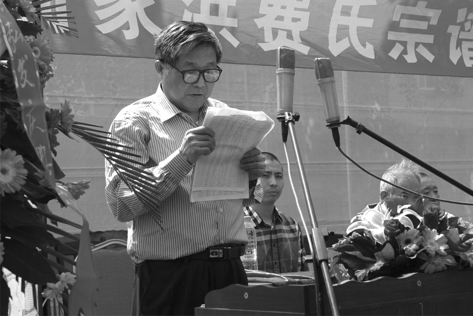 上午8:00剛過,20余名身著鮮艷盛裝的鼓樂隊夾道歡迎來賓。9:48頒譜典禮在莊重、熱烈、歡慶的氣氛中開始。首先由續譜負責人、15世孫費炳良熱情洋溢地作續譜工作匯報。隨后捐資代表、15世孫、星達石化配件公司董事長費新海發言。主編殷健榮、常州姓氏研究會蘇慎會長、無錫譜牒文化研究會副秘書長《譜牒研究》主編王金中、無錫祠堂文化研究會秘書長夏泉生、常州洛陽馬家溝費氏代表分別講話,對弘發大會的隆重召開表示熱烈祝賀。