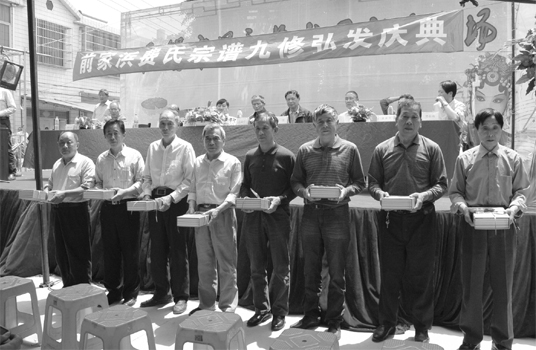 為了增強費氏宗譜弘發的氣氛,發譜當天晚上,特聘錫山錫劇團在廣場演出大型古裝戲《珍珠塔》。隨后又連續三天在廣場演出錫劇,盛況空前,吸引了四鄉八鄰百姓趕來觀看。