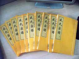 今日盛氏宗譜終告成,可喜可賀!甲午版宗譜采用宣紙線裝印刷,黃色綾面。非常大氣。