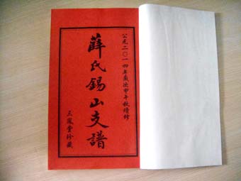 歲月滄桑,星斗轉移,錫山薛氏支譜余巷支自民國三十七年(一九四八年)重修至今已有六十六年,續修宗譜正當時。二O一O年三月,薛氏族賢煥深、曉鐘、其祥、海榮、永岳發起修譜,亞新、宗達、錫生、國生、國琪、薛明紛起響應。因受『文革』浩劫,老譜被毀,歷經二年尋訪無果,于二O一三年清明由蘇州薛煒清先生告知、老譜存放在無錫南門朱老師處。